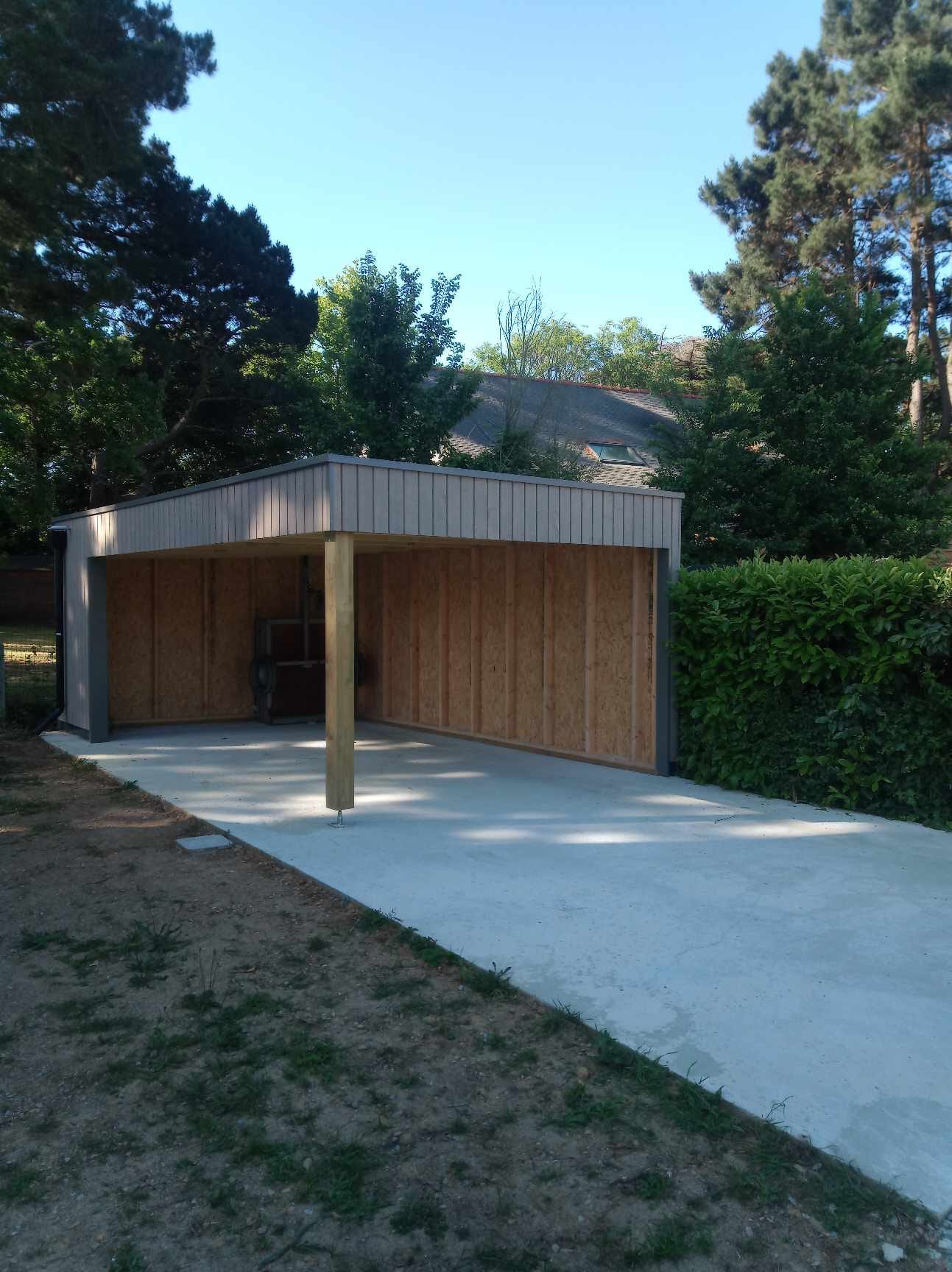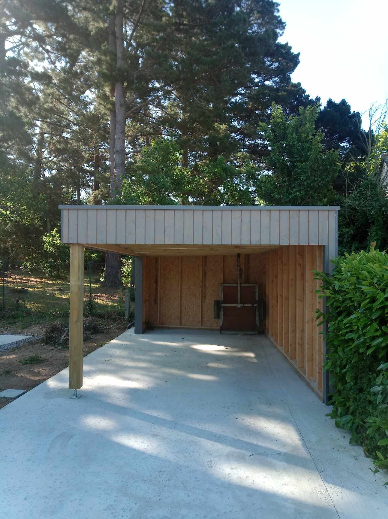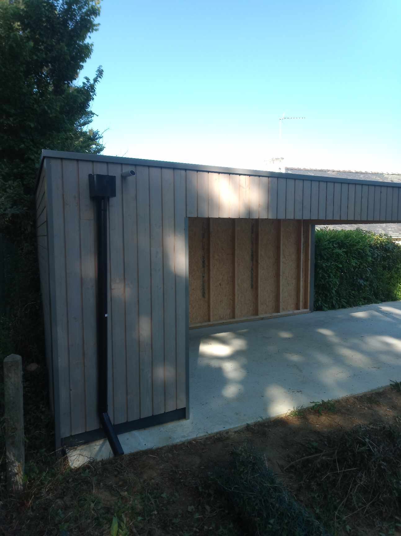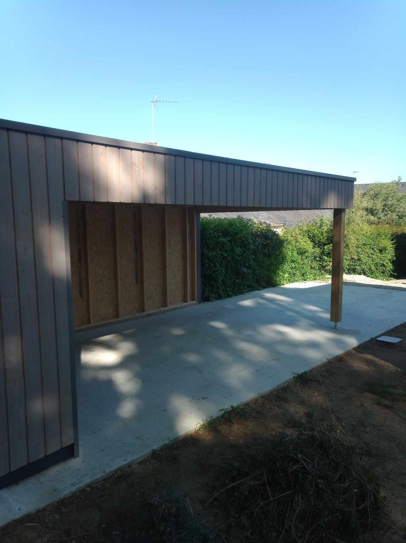 Carport en ossature bois avec toit plat EPDM et bardage vertical