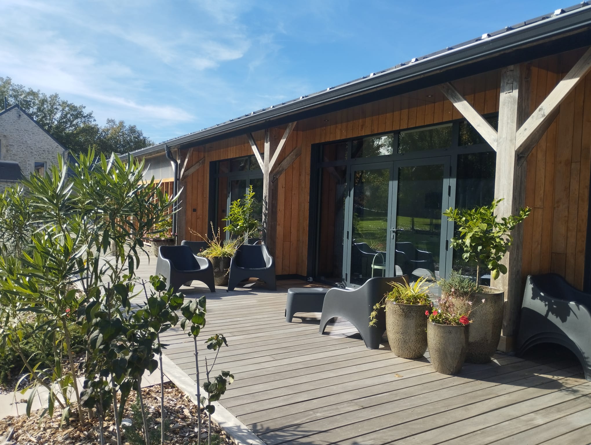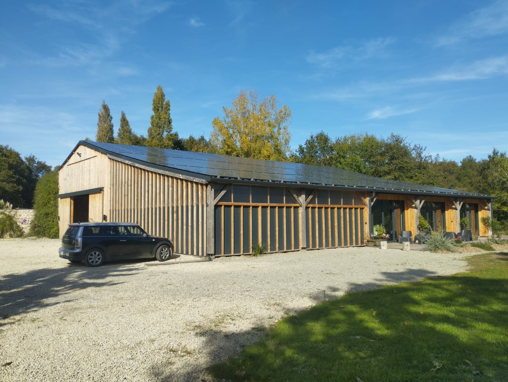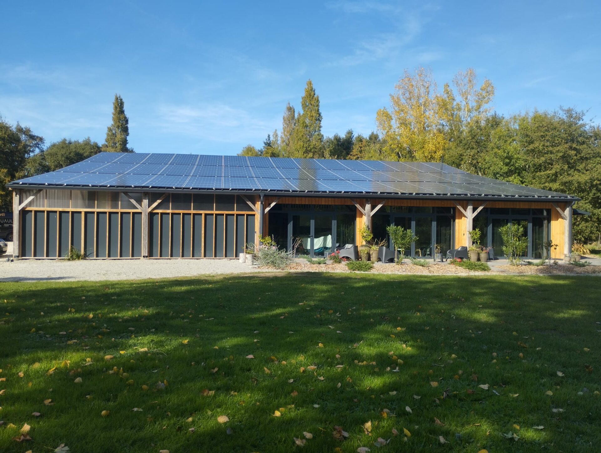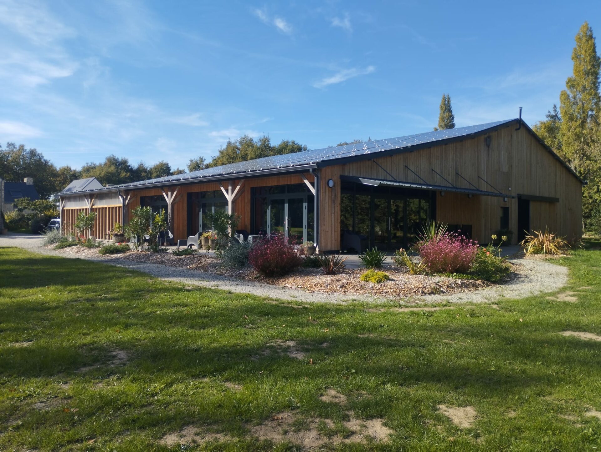 L’ossature bois, choisie pour sa légèreté et sa durabilité, permet de créer un bâtiment à la fois chaleureux et fonctionnel, offrant un cadre naturel et accueillant.