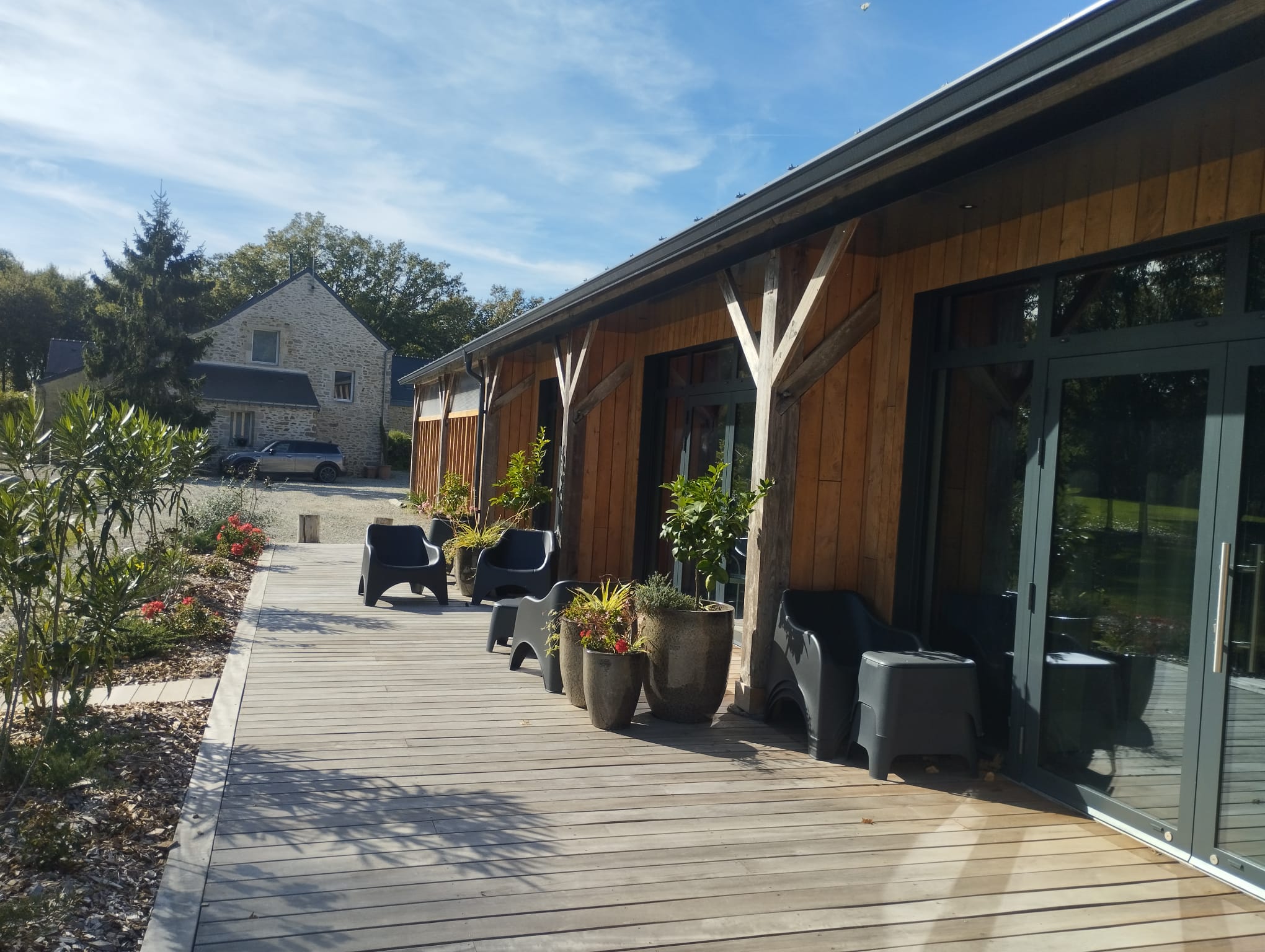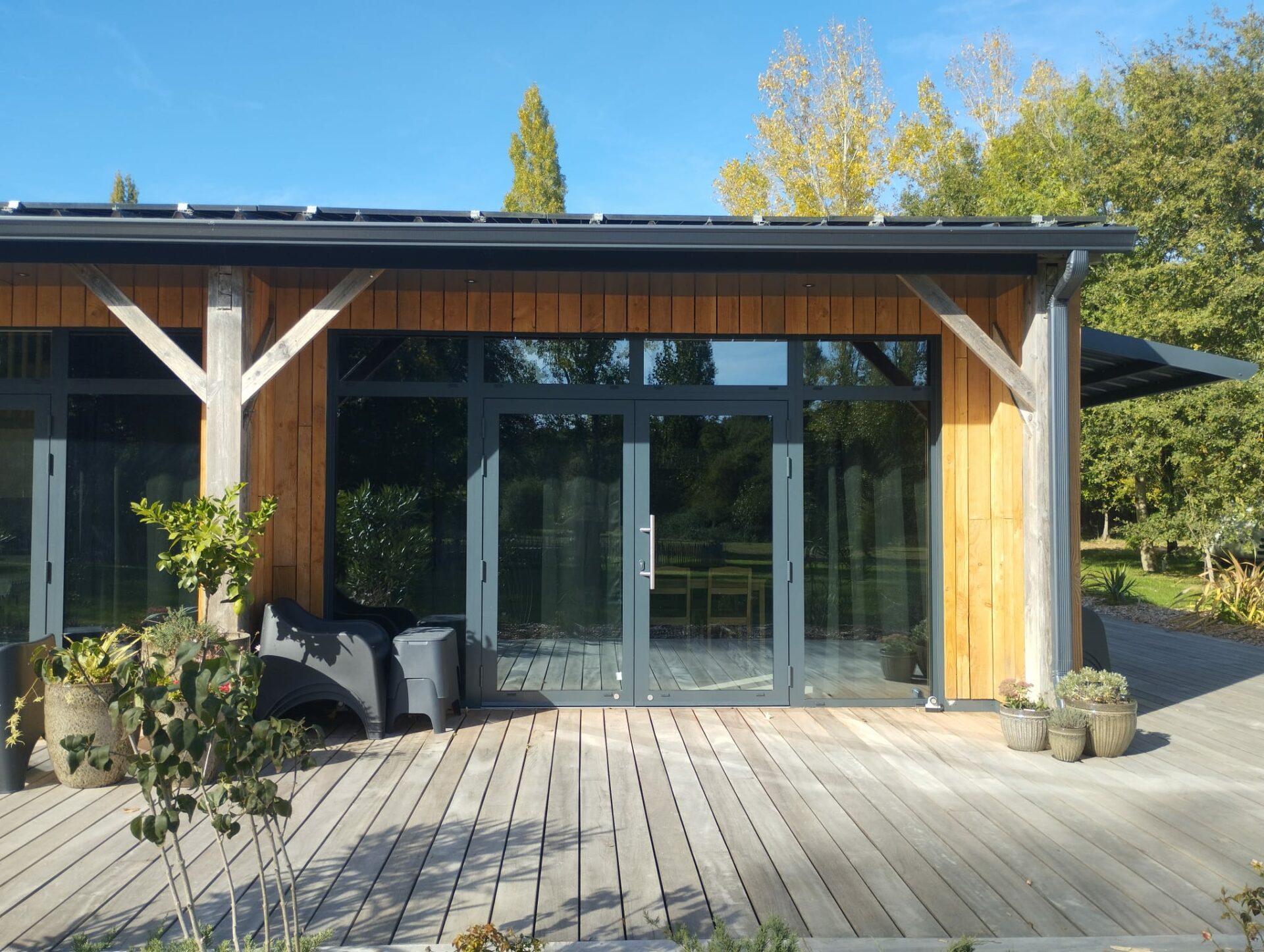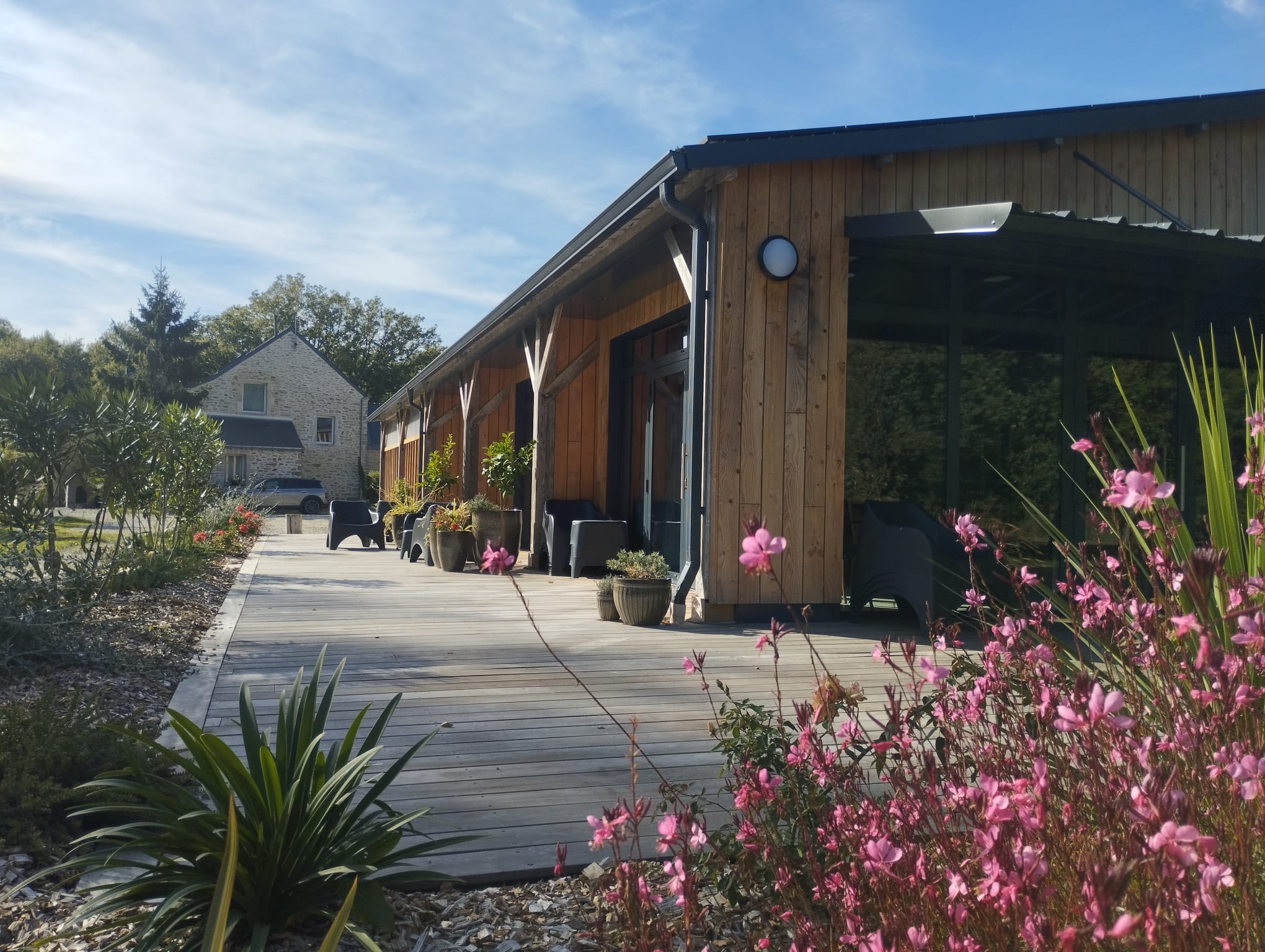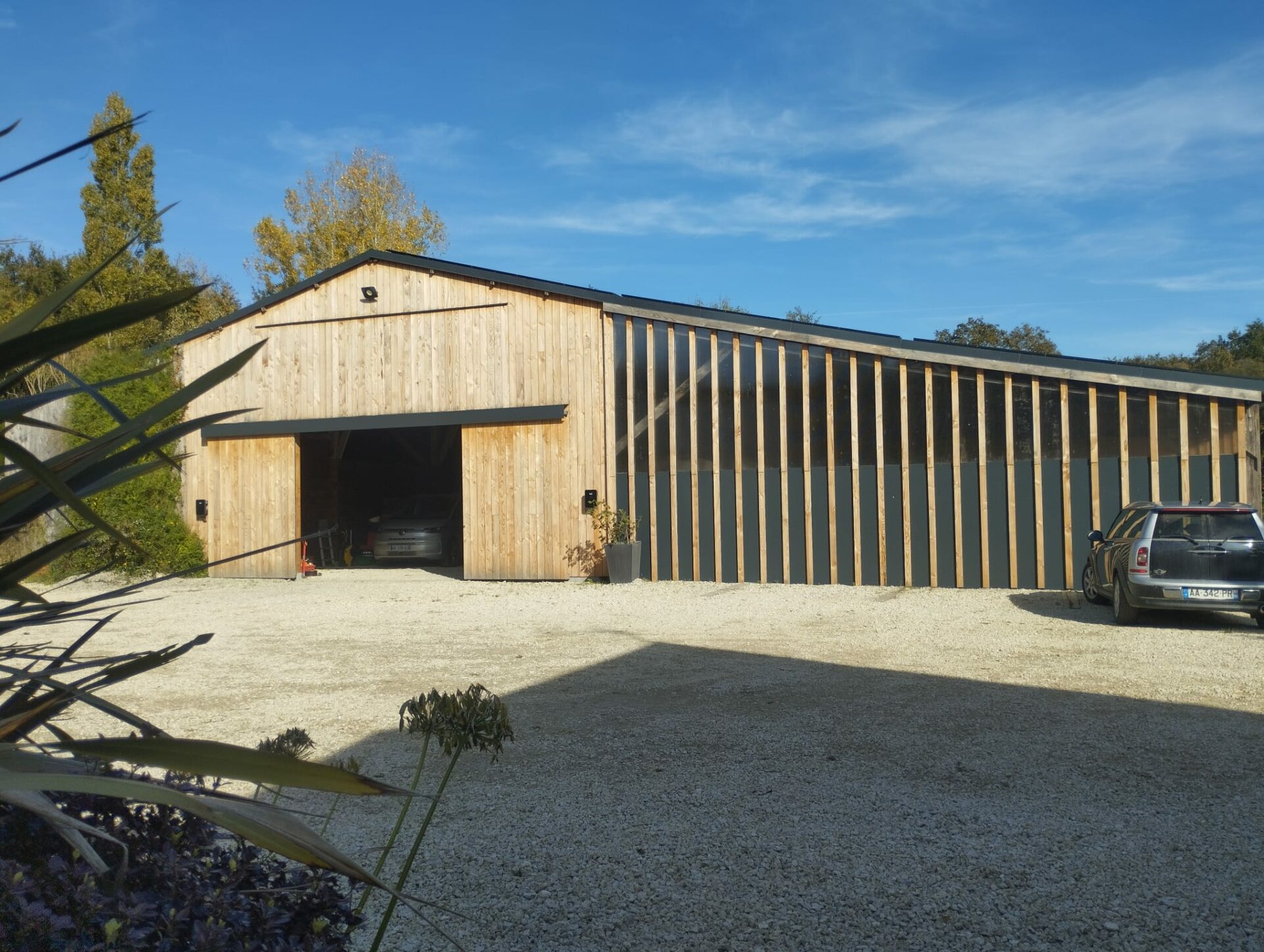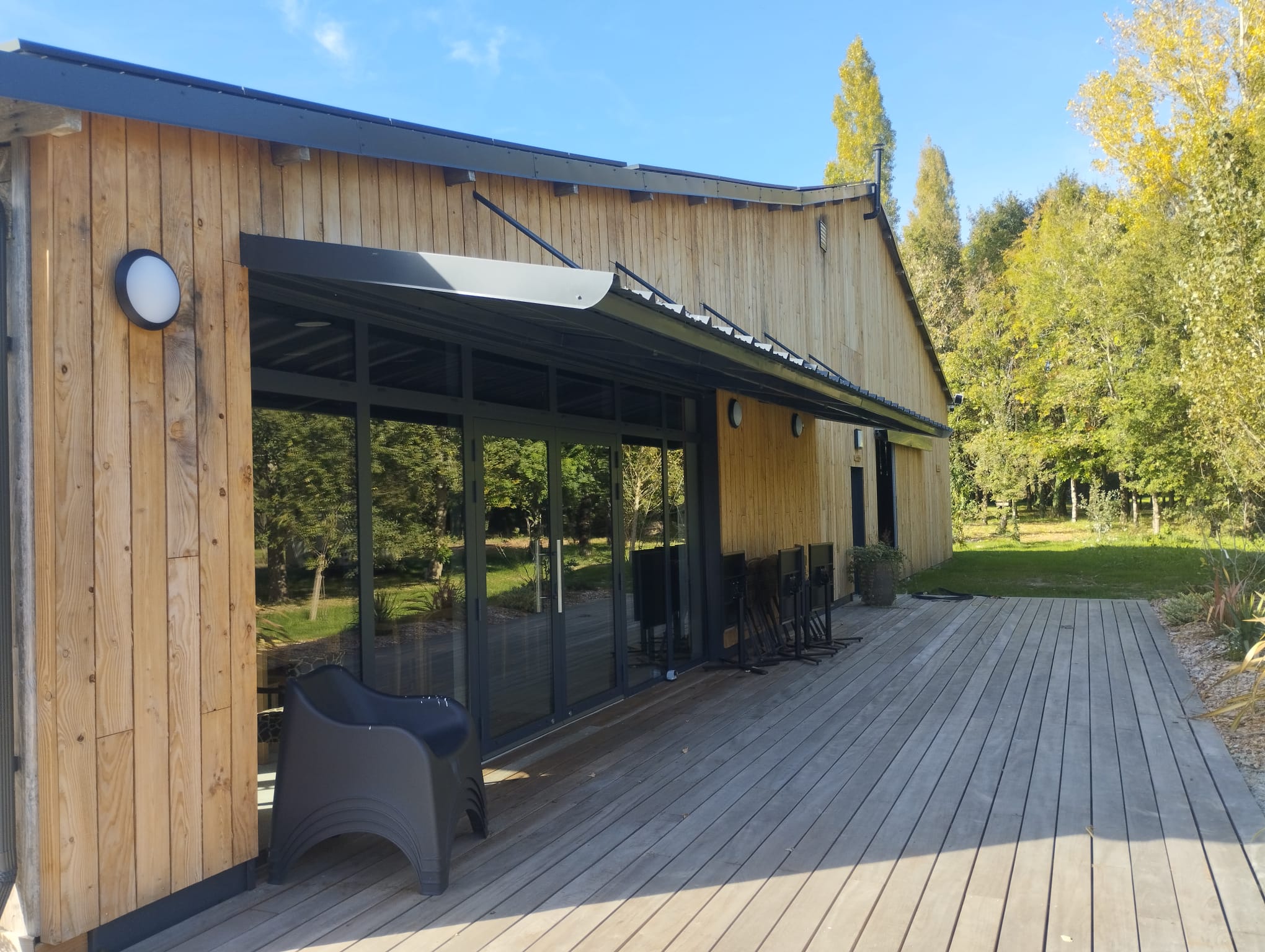 L’ossature bois, choisie pour sa légèreté et sa durabilité, permet de créer un bâtiment à la fois chaleureux et fonctionnel, offrant un cadre naturel et accueillant.
