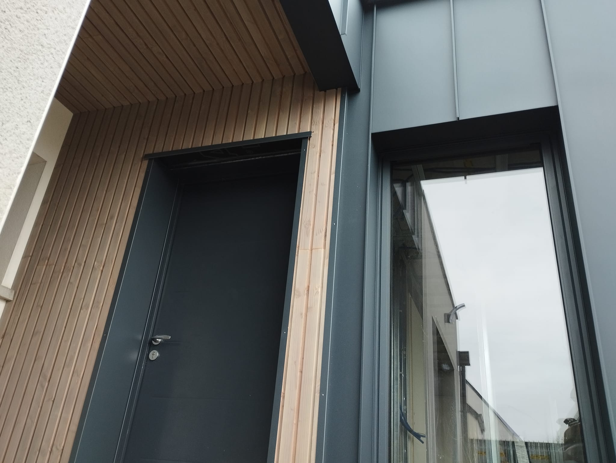 Extension en ossature bois avec toiture plate EPDM : une entrée contemporaine et fonctionnelle