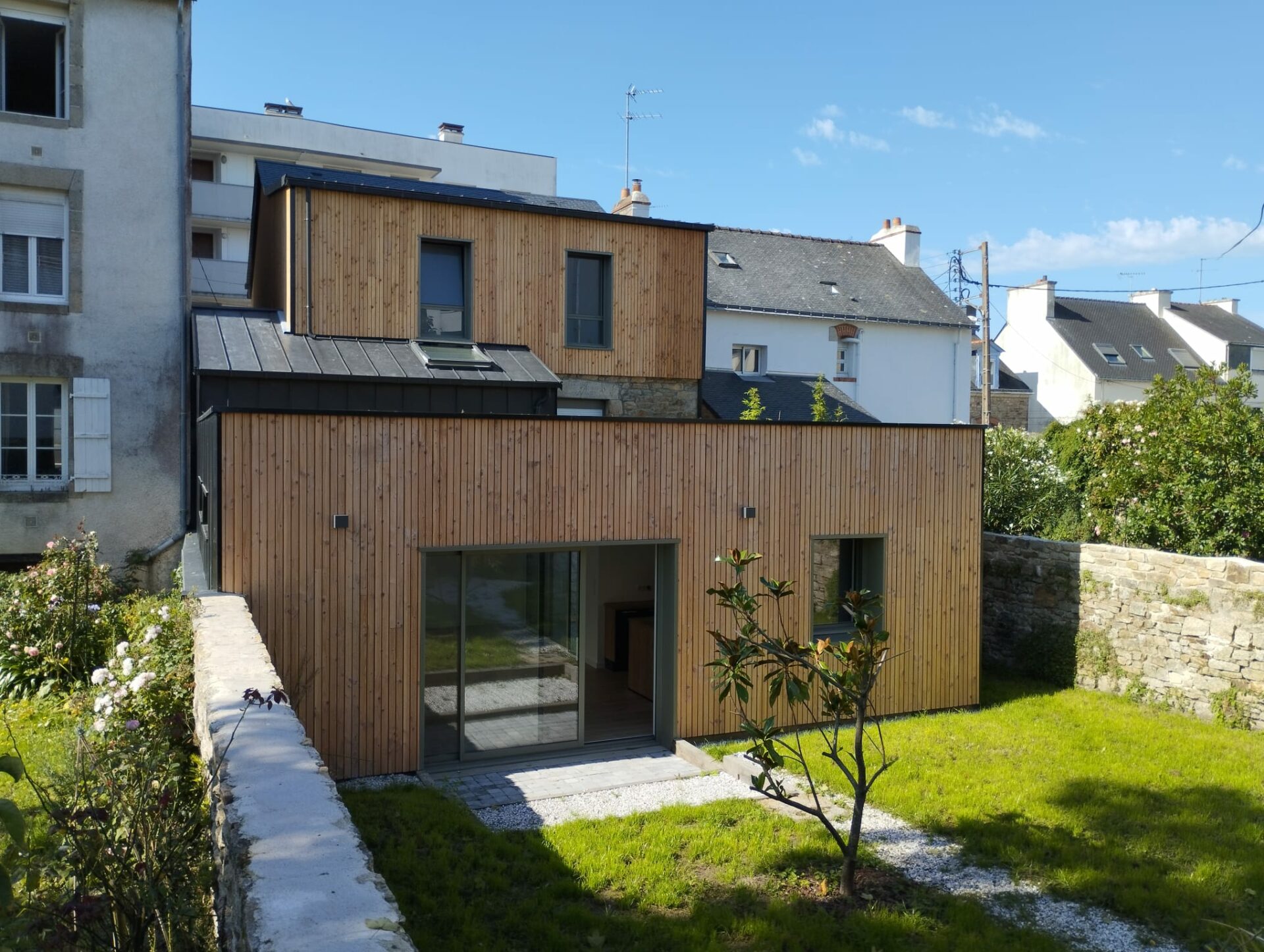 Ce chantier à Vannes illustre parfaitement les avantages de la rénovation en ossature bois en milieu urbain : rapidité d’exécution, durabilité, confort amélioré et faible impact environnemental.